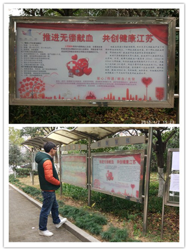 为进一步普及无偿献血和血液安全知识,鼓励更多的人加入到无偿献血的队伍中来,鼓楼区幕府山街道白云社区科普大学在省首个无偿献血宣传月期间,广泛开展无偿献血宣传活动。通过宣传展板展出,向辖区居民宣传无偿献血知识及健康保健知识,也让大家了解献血不但有益自己的健康,还能帮助他人,通过此次宣传活动,积极鼓励更多的人自愿地加入到无偿献血这项有意义的公益事业中来。